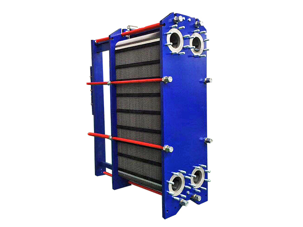 板式换热器是由许多换热板片(冲压有波纹槽的金属薄板),按一定间隔四周通过密封垫片密封,并用夹紧螺柱压紧而成,其角上的孔构成了连续的通道,介质从入口进入通道,并被分配到换热板片之间的流道内,每张板片都有密封垫片,板与板之间的位置是交替放置,两种流体,分别进入各自通道,由板片隔开,一般情况下,两种介质在通道内逆流流动,热介质将热能传递给板片,板片又将热能传递给另一侧的冷介质,从而达到热介质温度降低被冷却,冷介质温度升高得到加热的目的。