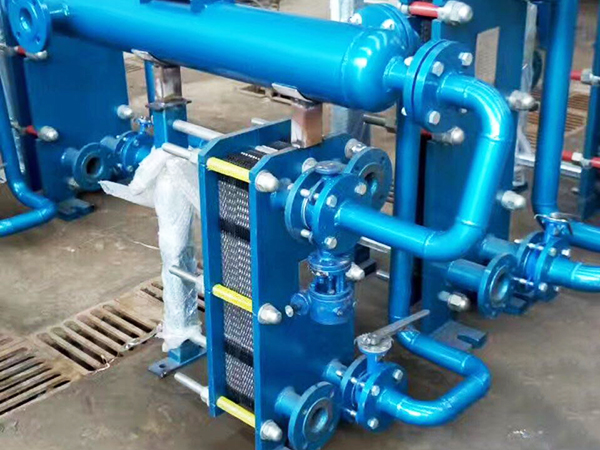 板式换热器是由许多换热板片(冲压有波纹槽的金属薄板),按一定间隔四周通过密封垫片密封,并用夹紧螺柱压紧而成,其角上的孔构成了连续的通道,介质从入口进入通道,并被分配到换热板片之间的流道内,每张板片都有密封垫片,板与板之间的位置是交替放置,两种流体,分别进入各自通道,由板片隔开,一般情况下,两种介质在通道内逆流流动,热介质将热能传递给板片,板片又将热能传递给另一侧的冷介质,从而达到热介质温度降低被冷却,冷介质温度升高得到加热的目的。